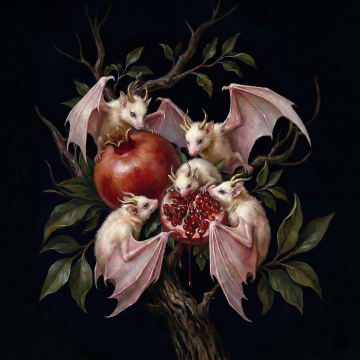水墨风插画,拟人化龙妖身披古袍,于月夜幽林中腾跃,墨迹飞溅,超现实主义构图,营造神秘沉郁的中式意境。