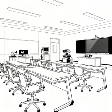 黑白线条勾勒的童趣插画,四名学生手牵手前行,飞鸟与爱心点缀天空,清新温馨的漫画风传递纯真友谊。