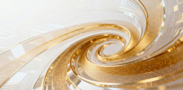 未来都市在鎏金粒子流中闪耀,3D虚拟现实感与金属光泽交织,光影流动如梦幻星河,科技感与抽象线条共舞。