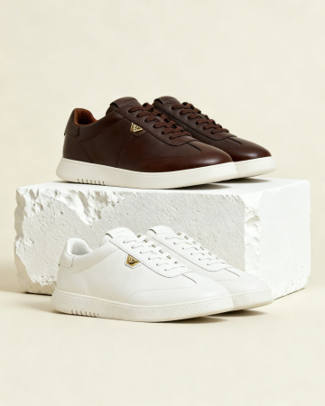 六双不同配色、不同样式、不同材质的时尚运动鞋,采用上下两行对齐排列的构图,每双鞋都具有清晰的细节和立体感,简约的浅色背景突出鞋款主体,整体呈现出电商产品展示图的干净、专业风格,光线柔和均匀,强调鞋子的材质纹理和设计细节,无任何文字、LOGO及二维码元素。