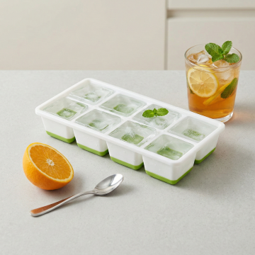 清新夏日冰格,轻拟物风设计,塑料质感透亮,薄荷青柠冰块晶莹剔透,搭配清爽饮品,营造舒适实景感。