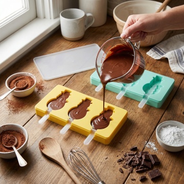 清新柠檬色系,轻拟物风硅胶模具,塑料质感与实景融合,传递清爽舒适感,夏日烘焙氛围跃然眼前。