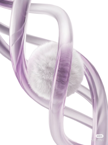 高细节3D渲染的DNA双螺旋结构,表面呈现光滑的半透明质感,缠绕的链条上分布着规则排列的球形连接点,周围悬浮着大小不一、同样具有透明光泽的气泡,整体采用渐变的深紫色调,从顶部的亮紫色逐渐过渡到底部的暗紫色,背景为柔和的淡紫色虚化光斑,营造出神秘而科技感的氛围,光线从斜上方照射,在DNA链条和气泡表面形成清晰的高光和细腻的阴影,所有元素排布规整有序,保持原有的分子结构形态和悬浮状态。