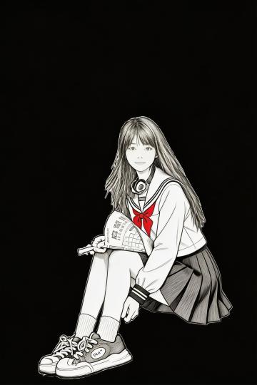 时尚感十足的插画风漫画,黑白对比鲜明,帽衫设计展现青春活力。