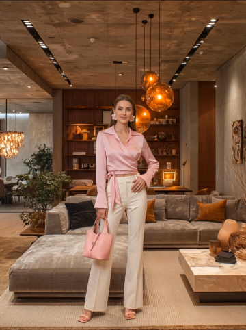 简约主义风格,融合优雅与商务感,柔和色调与质感面料营造舒适时尚氛围,实景空间衬托高级时尚格调。