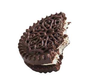 色彩鲜艳的写实风格冰淇淋球组合,透明雕花玻璃高脚杯盛放,三个不同口味的冰淇淋球堆叠:深棕色巧克力口味带细腻波纹,白色香草口味点缀黑色巧克力碎,浅棕色香草口味顶部装饰黑色几何图案巧克力片,右侧有螺旋状奶油,杯壁内侧底部有彩色水果丁(红色樱桃、黄色芒果块),两根棕色酥脆蛋筒斜插在冰淇淋球后方,整体光影明亮柔和,高光突出冰淇淋的丝滑质感和玻璃的透明光泽,色彩饱和度高且对比鲜明,构图饱满居中,背景为纯白色。