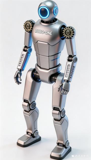 未来感十足的3D机械人,融合科技与工业美学,金属质感强烈,重拟物设计展现精密细节,蓝色光圈点缀,尽显智能魅力。