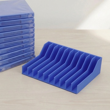 现代感与商务感兼具的蓝色塑料文件收纳盒,采用简约主义设计,轻拟物风造型,清爽舒适,质朴实用。