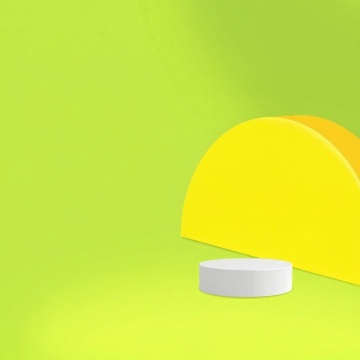 极简主义风格高级感底座,双层圆形叠放结构,底部略宽顶部稍窄的稳重比例,浅绿色哑光表面,光滑细腻的材质质感,几片叶子自然点缀,柔和均匀的漫反射光源,简洁大气的几何形态,无任何多余装饰,纯净的白色背景,高清晰度3D渲染,突出底座的立体感与高级质感,整体呈现简约、优雅、现代的设计美学。