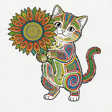 一張扁平插画作品,密密麻麻重叠,猫咪扁平插画,色彩鲜明和谐,用Mr Doodle风格,画面全部铺满,没有留白空隙,大师级作品,大师级艺术风格,大胆前卫的大师级作品,抽象概念