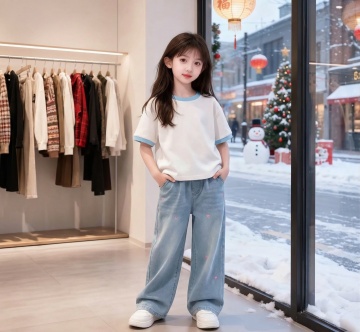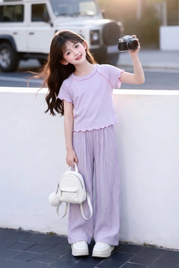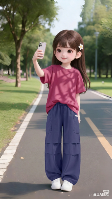 软3D风格的可爱女孩,大眼萌脸搭配清新自然背景,卡通感十足,柔和色调传递舒适氛围,T恤上的四叶草呼应幸运主题。