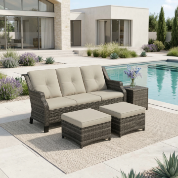 清新自然的庭院场景,3D重拟物风格呈现温馨浪漫的户外空间,柔和光影与实景感结合,营造舒适惬意的春日氛围。