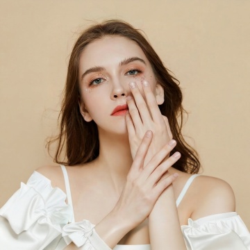 一张高清晰、写实风格的女性手部特写照片,手部肌肤呈现自然细腻的质感,肤色为健康的浅米色,带有轻微的肤色不均和细小的汗毛细节,指甲修剪整齐干净,呈现自然的淡粉色甲床和透明的半月痕。光线从斜上方柔和照射,在手背形成微妙的高光区域,指关节处有自然的阴影过渡,手腕线条流畅优美,手掌内侧隐约可见淡青色的血管纹理。手部姿势改为手掌微微张开,食指与中指自然并拢向前伸出,无名指和小指略微弯曲,拇指轻轻搭在食指根部,整体姿态放松且富有优雅的动态感。背景为纯白色,无任何杂质或纹理,突出手部的主体地位,图像边缘清晰锐利,无模糊或虚化效果,整体呈现出专业护肤品广告般的纯净、细腻、高级的视觉质感。
