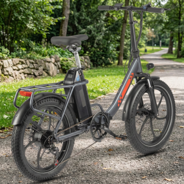 现代感与科技感融合的电动自行车,采用双色设计风与重拟物风格,金属质感强烈,实景自然背景衬托工业美学,展现未来出行新体验。