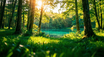 清新自然的瀑布实景,水彩风印象画派手法,展现生机盎然的绿色世界。