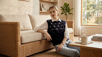 巴黎街角咖啡馆,优雅女性身着米色亚麻衬衫与白色半裙,轻拟物风面料质感,简约主义设计,文艺感与时尚感交织,实景感十足。