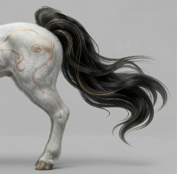 黑骏马踏峰而立,鎏金绸带如光河奔涌。