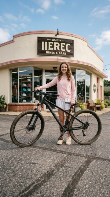 现代都市轻拟物风,金属质感电助力自行车,清新时尚穿搭,实景感十足,展现科技与生活的舒适融合。