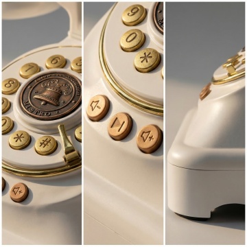 一套复古旋转拨号电话的系列图标设计,保持原有的卡通风格、圆润线条、简洁造型和立体感光影效果,包含6个完全不同造型的同元素内容,每个电话造型在保持核心拨号盘和听筒结构的基础上进行创意变形,如不同角度、不同听筒姿态、不同底座形状等,每个电话采用不同的纯色背景和主体色彩,整体以规整的网格排布,形成协调统一又各具特色的系列素材集合,无任何文字、二维码及多余装饰元素。