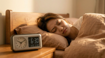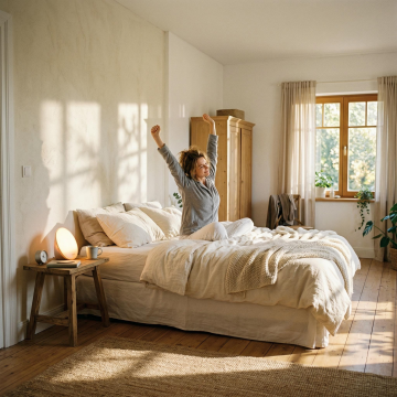 一张描绘年轻女性舒适睡眠场景的照片,女性侧身躺在床上,头枕在白色枕头,双臂环抱枕头,面容安详,闭着眼睛,嘴角带着微笑,穿着白色背心,盖着柔软的白色被子,卧室环境明亮,自然光透过白色窗帘洒入,床头有白色台灯,整体风格写实、温馨、宁静、明亮,色调以白色和浅色调为主,光线柔和自然,营造出舒适、放松、安逸的睡眠氛围,不同场景包括卧室的不同布置角度,装饰有简约的床头柜、柔和的灯光、不同质地的窗帘和床上用品,展现出多样化的睡眠背景。