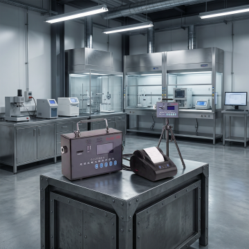 超声波清洗机工业场景淘宝主图,无文字,实验室工作台背景,产品自然放置在台面上,旁边摆放待清洗的工业零件、线路板,冷白色柔光打光,背景虚化,营造专业可靠的工业使用场景氛围