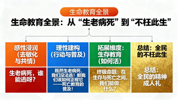 现代感扁平风设计,鎏金与印刷质感结合,大字风突出核心命题,商务感布局传递励志教育理念,呈现生命教育全景的深度思考。