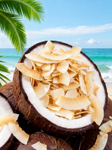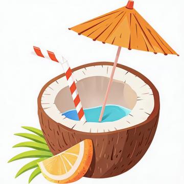 超高清摄影级别真实感,一个被劈开的新鲜椰子,外壳呈棕褐色带有天然纹理,内部白色椰肉质地细腻,椰子水从椰壳中飞溅而出形成动态的白色水花,水珠晶莹剔透,整体光影立体感强,光源来自上方形成自然的高光与阴影,背景为纯白色,突出椰子的自然质感与水花的动态效果,画面清晰锐利,细节丰富,色彩还原真实自然。