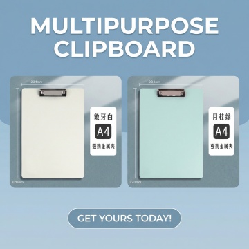 六个不同样式和材质的文件夹,白色背景,排列整齐,配色简洁,3D渲染风格,高清产品摄影,明亮均匀的顶光照明,柔和阴影,光滑塑料质感,清晰的边缘和细节,简约现代设计,视觉层级分明,信息传达高效,适合办公文具宣传,设计感强。