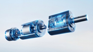 一个螺杆轴承,透视轴承滚珠,围绕轴承有一圈旋转的蓝光。