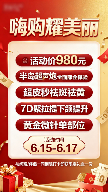 3D重拟物风格,塑料质感膨胀宝锅盛满时尚美妆与潮流包袋,喜庆红金配色搭配动感彩带,强化双11促销氛围,视觉冲击力十足。