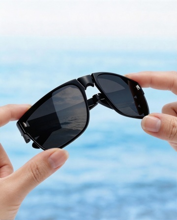 极简现代风格,白色纯色背景,居中规整排布单一元素——墨镜,高清3D渲染,金属质感镜框,深色镜片,简约线条,无任何文字、logo及水印。