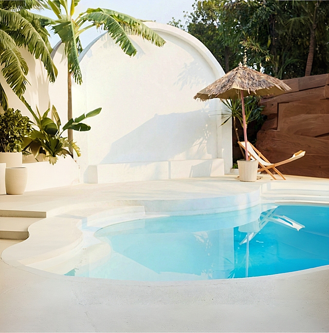 移除画面中的人物,向左右两侧扩展延伸原有度假泳池场景,保持整体风格和场景元素一致,保持原图的透视和光影不变详情