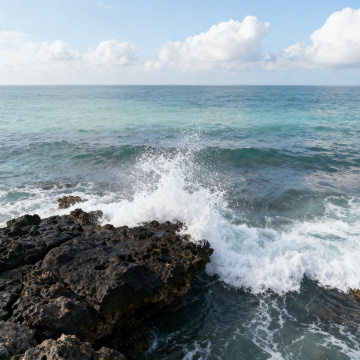 一张高清晰度的写实主义海滩风景照片,画面中清澈见底的碧蓝海水在阳光照耀下波光粼粼,海浪带着白色的泡沫正冲刷着沙滩上大小不一、形态各异的光滑岩石,岸边铺满了色彩丰富的细小鹅卵石和贝壳碎片,远处海天相接,天空呈现出明亮的蔚蓝色,点缀着几朵蓬松的白色积云,整体光影明亮柔和,营造出宁静而充满生机的夏日海边氛围,元素丰富且细节清晰,展现出自然景观的真实质感与和谐之美。