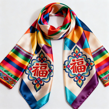 清朝常用云肩款式,中心为红色“喜”字刺绣,周围环绕细腻云纹、葫芦、蝙蝠、牡丹、卷草纹传统纹样,高饱和度红色、粉色、绿色、青花蓝色与金色丝线交织,刺绣质感细腻,丝线光泽感强,针脚立体感清晰可见,所有元素规整排布在纯白色背景上,整体构图平衡对称,展现精致典雅的东方美学韵味