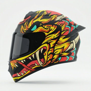 赛博朋克风夜景中,骑手疾驰于未来都市,金属质感机车与霓虹光影交织,头盔静置路面,虚实交错,科技感与酷炫感并存。