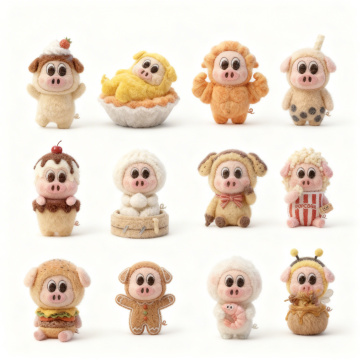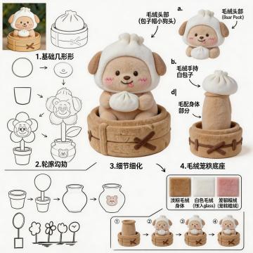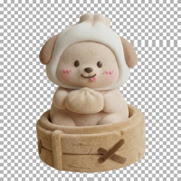 软3D风格甜品,毛发生长质感搭配卡通萌趣造型,粉色绒毛杯与笑脸小熊饼干,甜蜜可爱感十足,营造梦幻云朵背景的节日氛围。