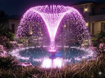 3D风与重拟物结合,金属质感灯饰在夜色中投射柔和光影,营造静谧现代庭院氛围,实景感十足,极繁主义细节尽显舒适与优雅。