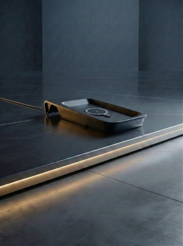 赛博朋克风格的智能手机充电场景,霓虹蓝与紫色渐变光效笼罩,手机屏幕显示动态赛博数据流图案,充电器和数据线呈现金属质感与霓虹灯带装饰,白色桌面转化为带有电路纹理的黑色高科技平台,背景墙变为布满全息投影广告和管线的未来都市夜景,整体光影对比强烈,充满未来科技感与机械美学,高细节,8K渲染,电影级构图