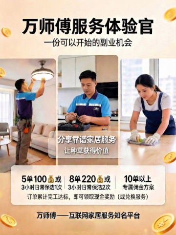 实景感家居场景,双色设计风搭配大字风标题,简约主义呈现舒适清爽氛围,传递温馨服务体验,突出新居开荒保洁的专业与信赖。