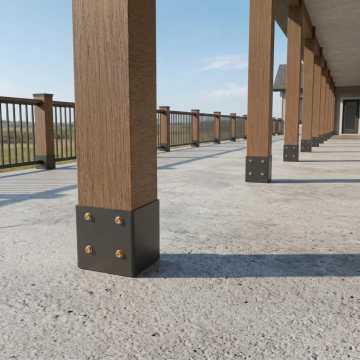 极简风格展台设计,三个白色带竖条纹装饰的圆柱形展台主体结构保持不变,展台材质改为哑光金属质感与磨砂玻璃底座相结合,表面呈现细腻的金属拉丝纹理,整体配色调整为以深绿色和原木色为主色调,搭配浅灰色台面,背景更换为户外自然场景,包含柔和的阳光透过树叶洒下的光影效果,地面为浅色鹅卵石铺就,周围点缀小型绿植和低矮灌木,营造出自然清新的户外展示氛围,展台底部有轻微的阴影投射,金属质感的银色小球置于展台前方地面,画面整体光线柔和,色彩和谐统一,具有现代简约的设计感和自然有机的视觉体验。