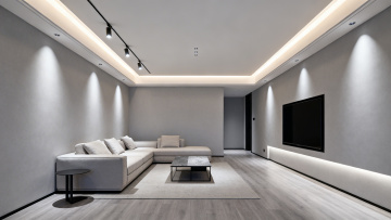 现代简约风格卫生间,整体采用白色大理石纹理瓷砖墙面与灰色地砖,搭配黑色金属边框的扇形玻璃淋浴房,内部设有银色淋浴喷头和挂杆,挂杆上搭着灰色毛巾。靠窗位置安装白色智能马桶,窗边有百叶窗,自然光透过窗户柔和照亮空间,天花板装有嵌入式照明和通风系统。左侧为黑白配色的浴室柜,台面为大理石材质,台上放置洗漱用品,整体空间干净整洁、光线明亮,具有清晰的线条感和现代设计感,呈现出不同场景下的卫生间摆设布局。