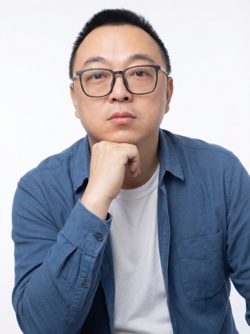 保留人物脸型、发型、年龄特征生成标准职场形象照,50MM焦段,F/4光圈(F/2.8-F/4区间),相机与人物距离3米,横向16:9比例(左右预留环境空间),人物占画面60%,入镜头部至膝盖上方5CM,平视视角,人物居中构图,头肩比例协调,身穿深墨蓝色西装,内搭白色衬衫,精致且高级的深蓝色斜向微微渐隐光泽感极细条纹商务感领带,下装黑色西裤搭配黑色皮带;正面抱胸姿态,肢体舒展的站立姿态,自信从容;主