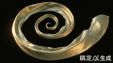 金色光芒以放射状从画面中心向四周延展,光线呈现出流动的液态质感,边缘带有明亮的高光,整体色调为深棕底色搭配暖金色光效,光影对比强烈,营造出神秘而华丽的氛围,光芒的造型变换为更具动态的漩涡状卷曲形态,光线线条更加柔和且富有层次感,保持原有的3D渲染质感和透明光晕效果。