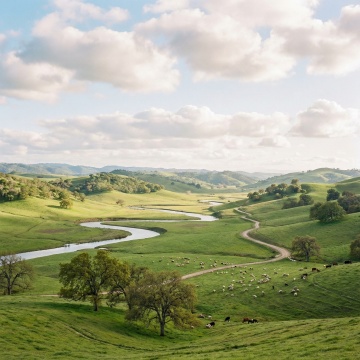 超高细节写实摄影,一串饱满剔透的紫色葡萄悬挂在藤蔓上,果实表面覆盖着天然的白色果粉,阳光照射下呈现出半透明的紫水晶质感,藤蔓上还残留着几片嫩绿的卷须和锯齿状嫩叶,水珠凝结在圆润的葡萄表面和叶脉间,侧逆光勾勒出果实的金色轮廓,背景是虚化的深绿色葡萄叶形成自然的浅景深,晨露在叶片边缘闪烁如钻石般的光芒,清晰可见的葡萄皮纹理与果脐细节,光影层次丰富,整体散发着清新湿润的田园气息与成熟果实的甜美感。