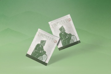 清新插画风,微缩艺术展现自然美景,茶盒设计融入山川元素,营造宁静氛围。