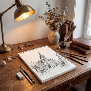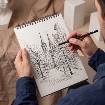 一个正在写字/整理文件的人,桌子上有笔记本、文件夹,传达“梳理信息、准备素材”。