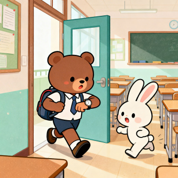 清新明亮的教室插画,扁平风与漫画感结合,简约主义构图,展现学生积极举手互动的温馨场景,充满舒适感与童趣。