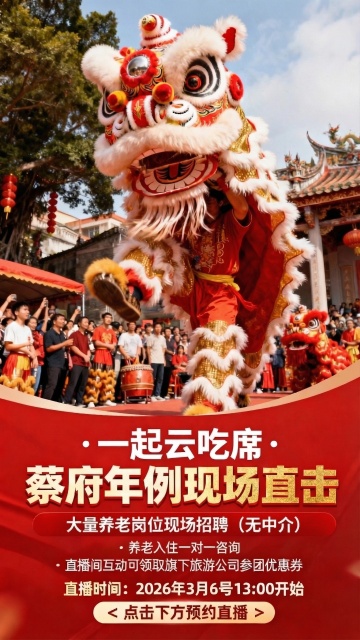 杰作,最佳质量,8k,超精细,高清细节,柔和暖光,3D 国潮卡通风格,马年年货节直播间,平视视角,完整构图,画面包含上贴片、双竖贴片、下贴片、场景化背景, 上贴片:位于画面顶部,红底金边圆形组合框内是白色文字 “年货提前囤”,下方是立体白色带红描边的超大主标题 “春节不打烊”,主标题下方为红色丝带式横幅,内有白色文字 “官方立减 限时 6.6 折”,右上角点缀 3D 卡通舞狮头元素,周围环绕金色烟