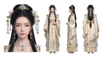 古典中式3D角色设计,融合刺绣、鎏金与浮雕工艺,以奢华面料呈现优雅唯美之姿,展现东方美学的极致韵味。