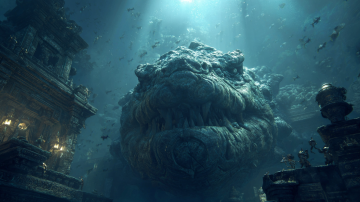 哥特风格殿堂中,金属质感的恶魔浮雕与光影交织,3D重拟物风塑造出神秘而厚重的体积感,营造出史诗级的黑暗奇幻氛围。